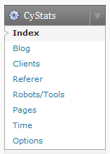 On the lower left side of your Admin panel you will see a link for CyStats and a click on that will take you to the main menu for CyStats: